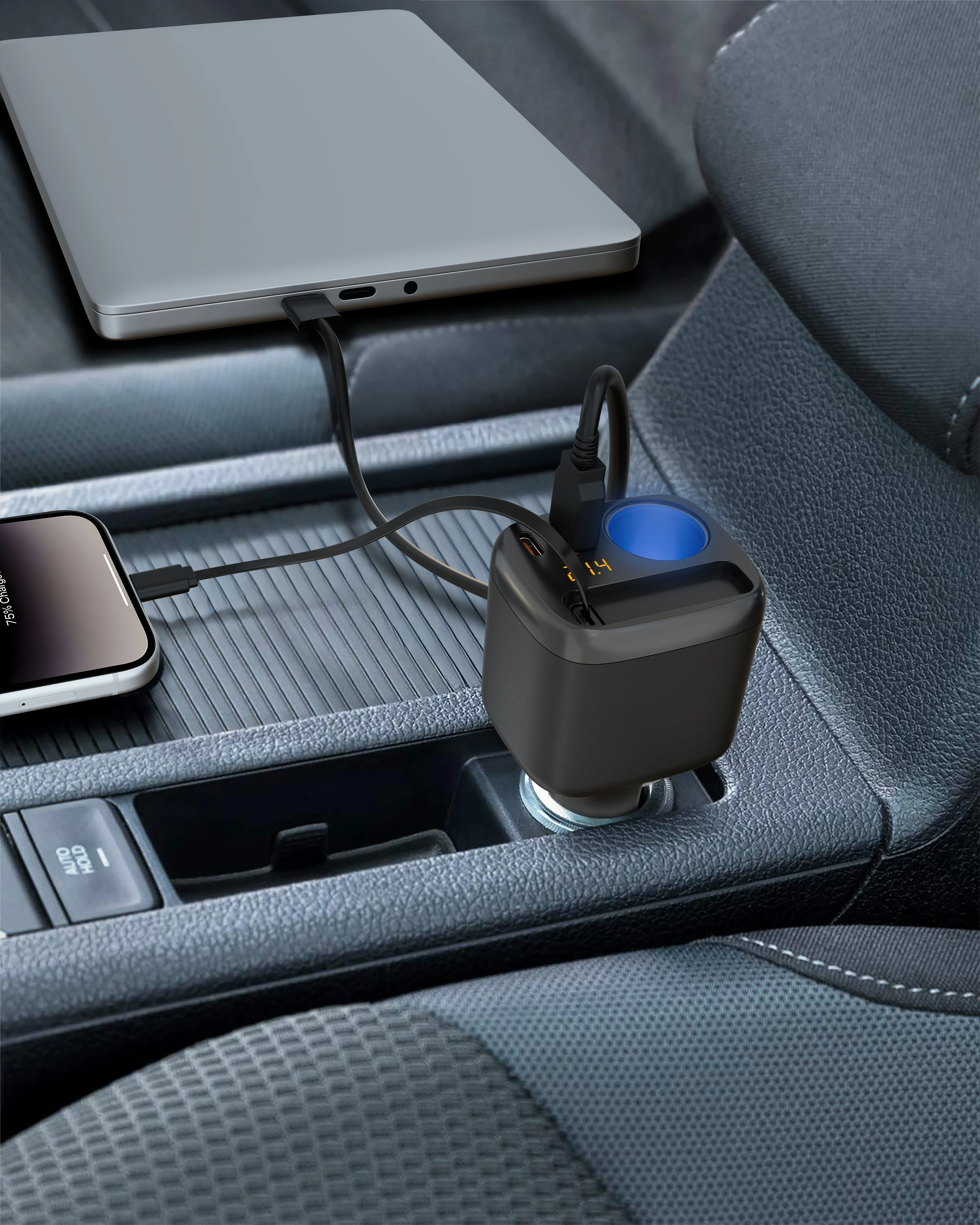 Designed to operate safely within a temperature range of 0°C to 40°C, the charger includes a retractable 60 cm cable for convenience and portability. It accepts input voltage ranging from 12V to 24V DC, making it compatible with various power sources. Equipped with fast multi-charging technology and smart charging protocols, this charger ensures efficient, safe, and adaptive power delivery, making it ideal for users needing reliable and flexible charging for multiple devices.
